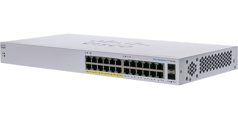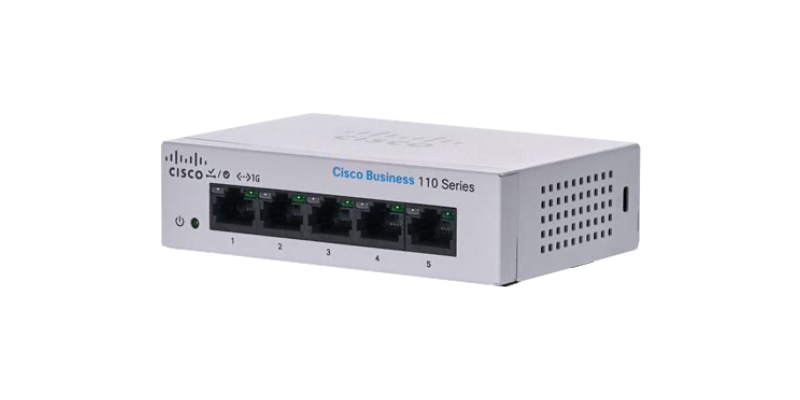 The Cisco Business 110 Series Unmanaged Switches are affordable, plug-and-play entry-level switches that provide gigabit Ethernet switching with key features like Power over Ethernet (PoE), energy efficiency, and traffic prioritisation for a fast and resilient small business network.